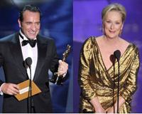 昨天,第84屆奧斯卡金像獎頒獎禮在好萊塢高地中心舉行。米歇爾-阿扎納維修執導的《藝術家》,馬丁-斯科塞西執導的《雨果》,分別以五項大獎成為最大贏家。《藝術家》男主角讓-杜雅爾丹,成為首位獲得奧斯卡最佳男主角的法國演員,在《鐵娘子》中精彩詮釋撒切爾夫人的梅麗爾-斯特里普,第二次獲得了最佳女主角稱號,這也是她第三座奧斯卡表演獎杯。