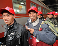 昨天下午召開(kāi)的全市流動(dòng)人口計(jì)劃生育管理協(xié)調(diào)小組(擴(kuò)大)會(huì)議透露,截至去年底,我市登記流入人口總數(shù)近430萬(wàn)人,外來(lái)人口與戶籍人口之比高達(dá)75:100。流動(dòng)人口在給城市帶來(lái)巨大活力的同時(shí),也因?yàn)槠湟?guī)模不斷擴(kuò)大,出生性別比嚴(yán)重失衡,勞動(dòng)力文化素質(zhì)總體偏低等一系列問(wèn)題,使城市面臨著巨大的社會(huì)壓力。(寧波晚報(bào))