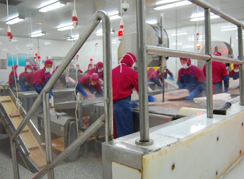 據介紹,該基地由浙江大洋世家股份有限公司投資興建,投資額500萬美元,冷庫容量為1000噸,年可加工超低溫金槍魚原料10000噸。基地建成后將著力于超低溫金槍魚的精深加工,改變了以往超低溫金槍魚單一原條魚出口的格局,提升了超低溫金槍魚捕撈項目的綜合效益。