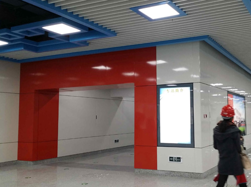 2號線一期車站公共區裝飾的概念主題源于寧波城市文化特色之一商幫文化,全線裝修主題以“甬幫之路”的概念,取“路”的抽象造型貫穿全線公共空間,寓意“傳承、發展、騰飛之路”之意。全線公共區裝飾以“簡裝”為設計理念,整體設計現代時尚,風格創新,同時不失城市的歷史文韻。