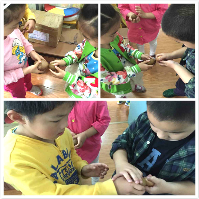 老師給孩子們講解了立夏是夏天的開始。立夏有斗蛋、立蛋、吃蛋等傳統習俗,讓孩子對立夏有了初步的了解。老師還請幼兒從家里帶來熟蛋,裝在彩色絲線編織成的小網袋里,讓孩子們去認識各種各樣的蛋,去觀察它們的外形特征,從而豐富孩子的知識經驗。老師們還要求每位孩子把自己的蛋用水彩筆裝飾起來,畫出一個屬于自己的獨一無二的蛋。在“斗蛋比賽”環節,孩子們和自己伙伴斗蛋,誰的雞蛋斗破了誰輸,贏了的小朋友則被封為“斗蛋大王”,激動人心的斗蛋活動讓孩子們在開心快樂中加深了對節日的體驗。