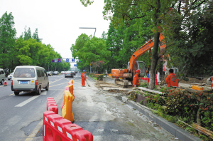 昨天,在環城西路與環城西路北段86弄交叉口,挖掘機等各類施工機械正忙個不停。澤民人行天橋及周邊道路交通整治工程已于近日開工建設。據了解,該人行天橋長44.5米、寬4米,橫跨環城西路建設,計劃于今年7月完工。