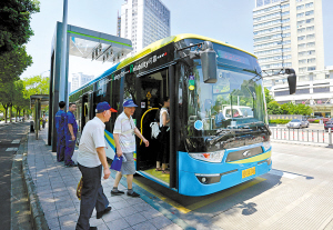 “電動公交車空間大,沒有汽油味,又不暈車,比以前的公交車坐著更舒服。”昨日,剛出站的王阿姨為196路電動公交車“點贊”。