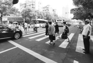 在第一輪測(cè)試中,交警和協(xié)警選取一條寧波首批樣板斑馬線路段,此時(shí)正值上班高峰期,車輛行人川流不息,在交警和協(xié)警的引導(dǎo)下車輛魚(yú)貫而過(guò),有條不紊。