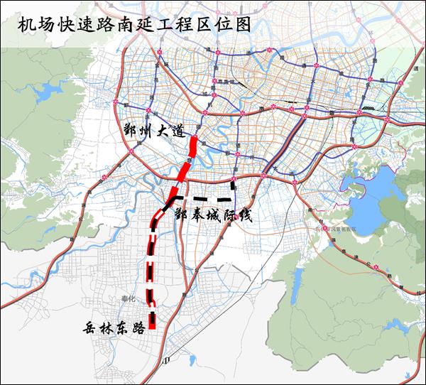 機場快速路南延工程位于海曙區、鄞州區和奉化區,北起海曙區鄞州大道,南至奉化區岳林東路,全長約18.8公里。工程擬采用“主線高架+地面輔道”的建設形式,其中鄞州區明州大道至奉化區中山東路(約11.8公里)與軌道寧奉城際線“四站五區間”共線,共線段采用高架一體化結構。主線高架采用城市快速路建設標準,雙向6車道,設計車速80公里/小時;地面輔道采用城市主干道建設標準,雙向4-6車道,設計車速50公里/小時。