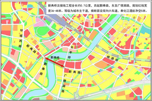 規劃顯示,新典橋位于鄞州區、海曙區,西起鄞奉路,東至廣德湖路。工程道路等級為城市主干路,全長約700米,道路標準寬度36-48米。規劃雙向6車道,奉化江通航凈空5米。規劃的新典橋和一旁的長豐橋一道,將大大方便鄞州區和海曙區的互通往來。