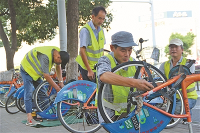 全市160名公共自行車維修人員,日均修車1200輛。(張燕史春娜攝)