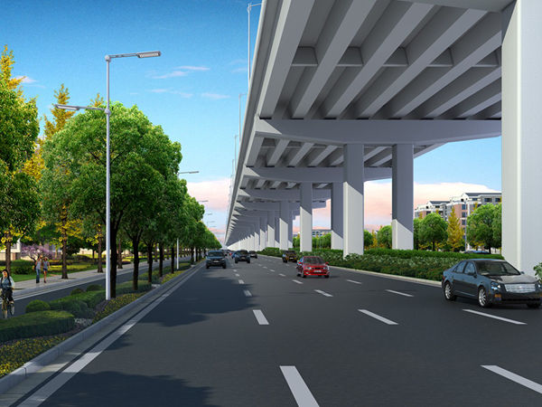 高架主線東接一期工程薛家南路路口高架主線,西至秋實路環城南路立交,標準寬度25.5m,沿線設置3對平行匝道,秋實路-環鎮北路段道路寬度51-83m。高架主線南接秋實路環城南路立交,北至15米規劃河道進入地面段,至秀豐路秋實路交叉口進入隧道段,高架主線標準寬度25.5m或32.5m,隧道段標準寬度29m。