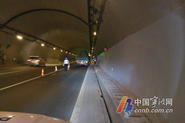 5月17日晚上7時(shí)25分許,郭師傅駕駛半掛貨車開往上海。在途徑G15沈海高速往上海方向長(zhǎng)溪嶺隧道內(nèi)時(shí),因氣溫炎熱,排氣管發(fā)生故障,車輛拋錨在第三車道。寧波高速交警二大隊(duì)民警何雋、協(xié)警裘為軍接警后火速趕往現(xiàn)場(chǎng),進(jìn)行示警處置。