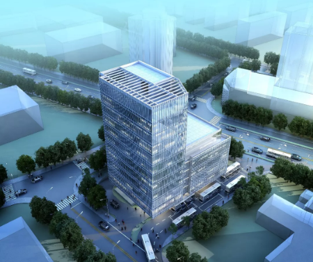 公交外灘中心站位于寧波市江北區人民路西側、瑪瑙路以東、外灘大橋以南,距外灘大橋地鐵站約400米,可實現與地鐵2號線的有效銜接,對外灘片區客流的引入和疏散、緩解周邊交通擁堵起到積極的作用。項目總占地面積為3013平方米,建筑面積為10228平方米,于2016年4月26日開工,2018年1月14日竣工。大樓總高49.95米,為地上十一層和地下一層組合的公交綜合體,地面一層為公交首末站和公交調度用房,具備3條公交線路的運行能力,地下室為小汽車停車場和設備用房。