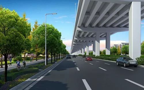 采用“高架主線+地面輔道”的建設形式,主線高架雙向6車道,地面輔道雙向6車道+兩側機非混行道。建設內容包括新建高架1座、續建世紀大道-北外環互通立交1座、新建上下匝道2對(分別位于東明路、永平路)。