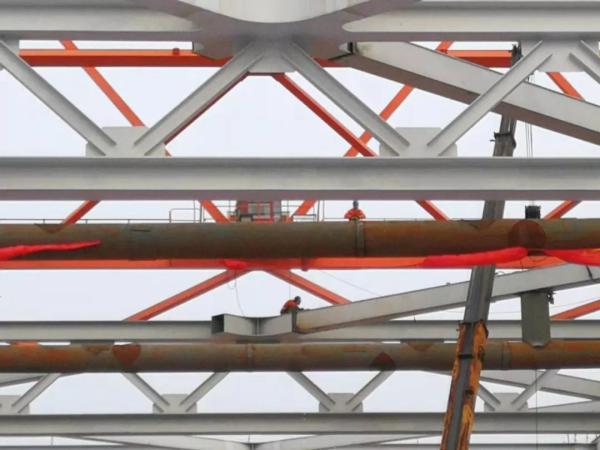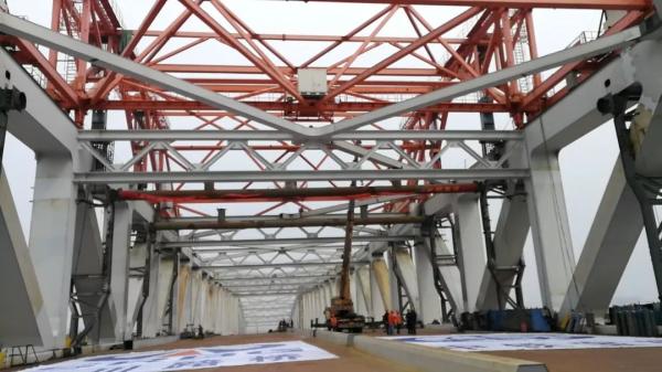 市住建局三官堂大橋項(xiàng)目負(fù)責(zé)人夏偉杰說,1月10日主橋鋼桁梁吊裝到位,11日上午9點(diǎn)完成姿態(tài)調(diào)整,13日晚上4個(gè)主要的桁口焊接到位,14日上午進(jìn)行橋面板的焊接。