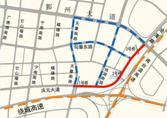 慶元大道(天童南路-鄞州大道)工程總投資約3.93億元,工程建設費約2.65億元。工程西起天童南路,沿規劃慶元大道線位,北至鄞州大道。