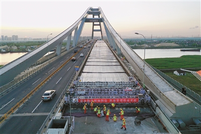 明州大橋橋面鋪裝改造工程。(袁迪迪 張凱凱 攝)
