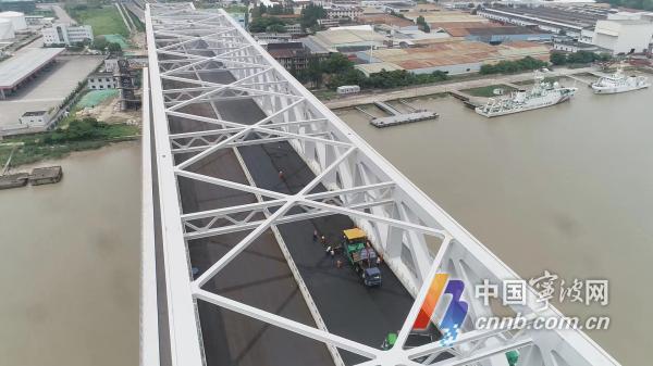 工程南起鄞州區江南路、北接江北區規劃青云路,全長2.6公里,按雙向6車道標準建設。其中橋梁長度約1.7公里,主橋全長700米,主跨400米,主橋設計為一跨過江矮塔斜拉橋,主梁采用混合梁,主塔采用鋼結構V型塔,全橋用鋼量近兩萬噸。大橋由寧波城投所屬通投公司負責建設。工程于2016年11月16日正式開工,8月31日,完成已建工程初步驗收。