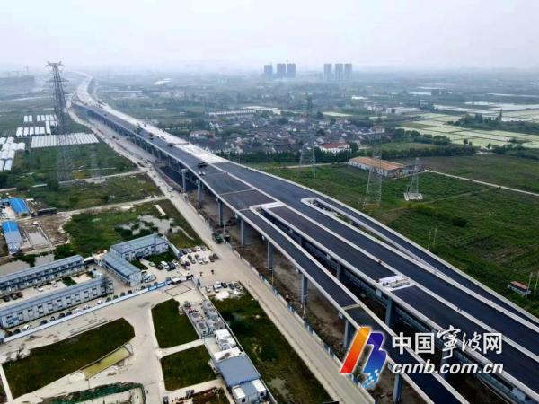 其中,南段工程橫跨鄞州區、奉化區,自機場路高架往南延伸,北起繞城高速,南至岳林東路,工程全長14.4公里。工程采用“高架主線+地面輔道”建設型式,高架主線設計時速80公里每小時,標準段設置雙向6車道,局部區域增設輔助車道,設置雙向8車道,工程預留2座全互通立交,新建8對平行匝道;地面輔道,設計時速50公里每小時,標準段設置雙向6車道。