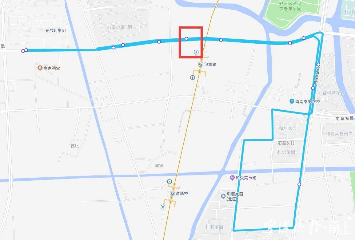蕭皋西路明光路口(精成車業)、九曲小區二期、蕭皋西路百梁南路口、句章路地鐵站北、蕭皋東路寧南南路口、錦悅灣花苑西、寧南南路金峨東路口、和順家園東(新設)、它山堰路金峨東路口(新設)、和韻家園北(新設)、錦悅灣花苑西、蕭皋東路寧南南路口、句章路地鐵站北、九曲小區二期、蕭皋西路明光路口(精成車業)。