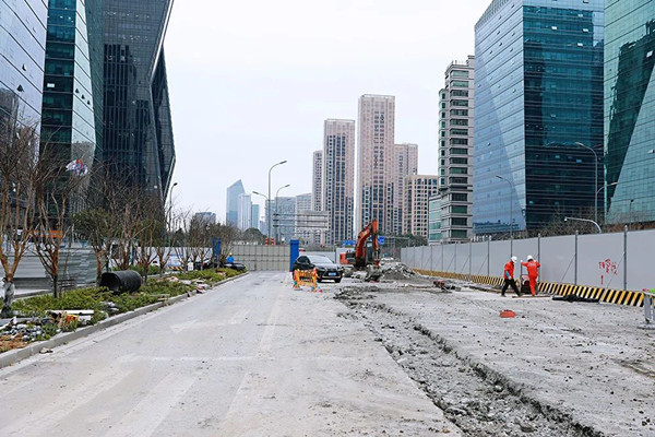 取得關(guān)鍵性進展的還有8號線一期南部商務(wù)區(qū)站和明州醫(yī)院站。南部商務(wù)區(qū)站是3號線與8號線的換乘站,于去年12月完成交通導改,場內(nèi)設(shè)備設(shè)施已全部拆除完成。此外,綠化遷移已完成90%,計劃3月底進行槽壁加固施工,管線改遷工作同步推進。