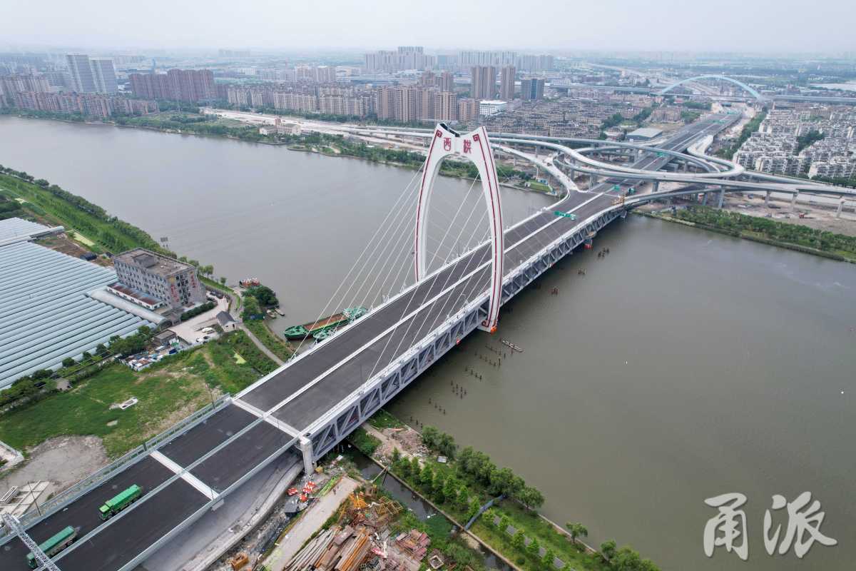 2022年6月9日上午,無(wú)人機(jī)鳥瞰寧波西洪大橋主體建筑基本完工,99米的高主塔屹立于姚江之上,為海曙區(qū)連接姚江新城的發(fā)展建設(shè)增添了新地標(biāo)、新景觀。這是寧波第一座雙層通行的跨江大橋!