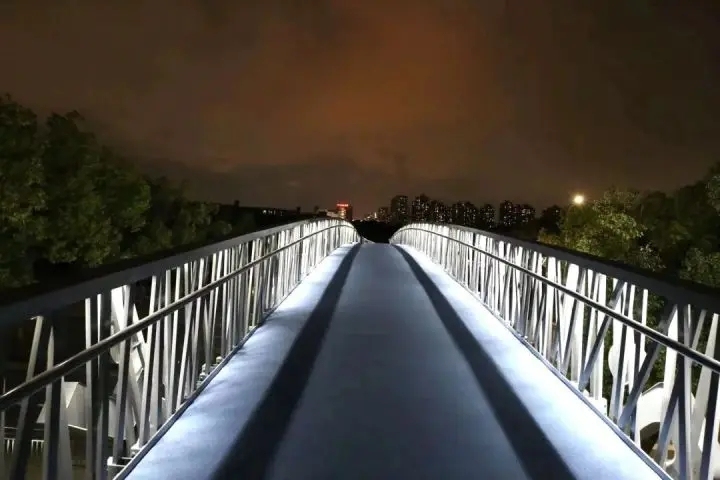 院士星光橋橋長約130米,寬3米,橋梁主體為鋼結(jié)構(gòu),設有南北方向坡道及雙梯道。院士公園作為城區(qū)內(nèi)一座綜合性公園,周邊居民游憩夜跑需求較大,此橋貫通之前,公園主園路被首南東路阻隔,而首南東路作為鄞州區(qū)重要的城市次干道,車流量較大,居民通過時存在較大的交通安全隱患。此橋開放后,將貫通公園主園路,不僅方便了居民活動,同時保障了橋下道路交通順暢及安全。