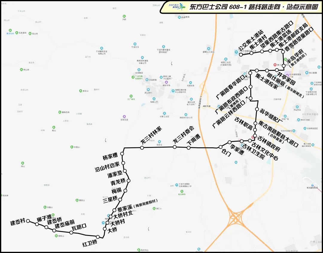 三、公交集士港站至公交烏頭門站的608路部分班次調整為公交集士港站至建岙村運營,并編碼為608-1路