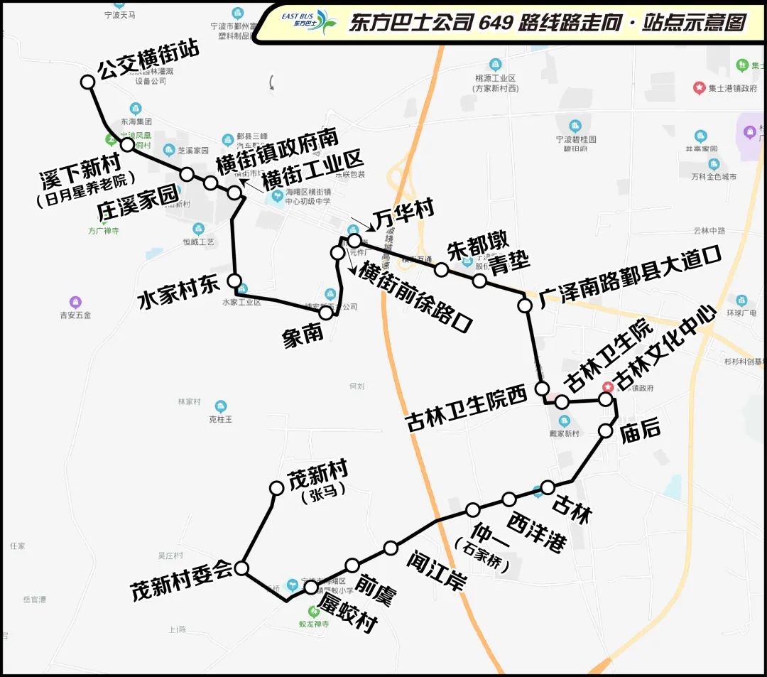 四、公交橫街站至公交古林王家站的649路調整為公交橫街站至茂新村(張馬)運營