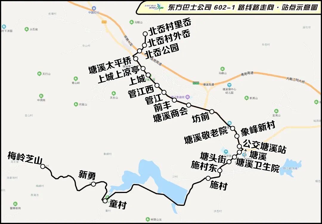 公交塘溪站至梅嶺芝山的602-1路調整為北岙村里岙至梅嶺芝山運營