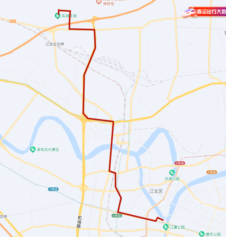 線路走向:和義路、開明街↓、中山東路↑、江廈街↑、藥行街↑、開明街↑、中山東路、中山西路、翠柏路、環城北路、青林渡路、江北大橋、江北大道、機場路高架、榮吉西路、鞍前線↓、彩云路↓、蓀湖路。