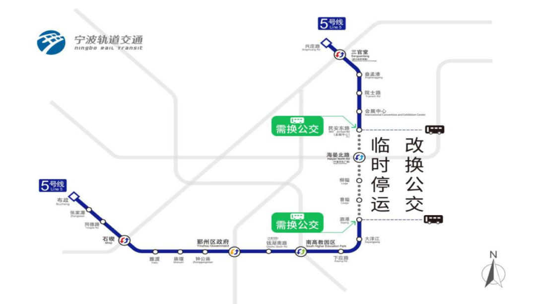 因施工需要,寧波地鐵5號線部分區(qū)段需臨時停運(yùn),為最大限度降低對乘客出行的影響,充分利用春節(jié)客流低谷,決定于2023年1月21日至1月27日(除夕至初六),5號線民安東路站至泗港站區(qū)段臨時停運(yùn),開行免費(fèi)公交專線。1月28日起地鐵全線恢復(fù)正常。