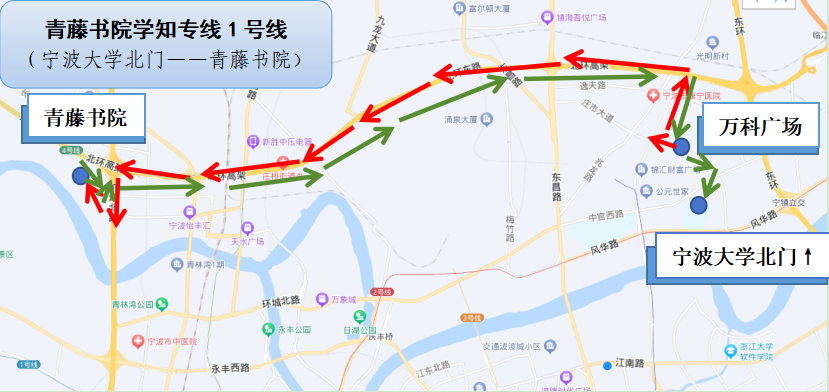 站點設置:寧波大學北門↑、萬科廣場、青藤書院
