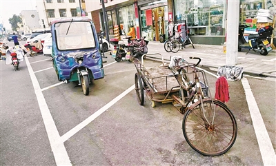 在高新區貴駟街道上海發聯超市門口,記者看到,該處的公共停車位被三輪車占用。在姜山鎮獅山農貿市場門口和江北區建業街,同樣有三輪車和雜物占據公共車位。而在海曙區獅子街,則有一輛破舊的面包車占據了一個公共車位。