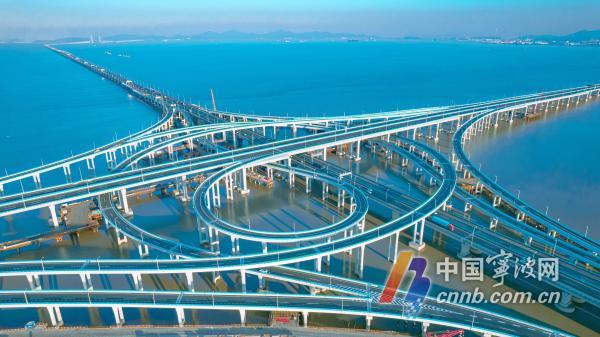 亞洲最大海上高速樞紐——杭甬高速復(fù)線寧波段一期濱海互通。通訊員 李全平/攝