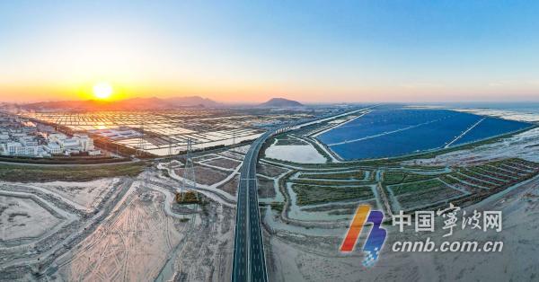 東段起點(diǎn)位于杭州灣跨海大橋南接線附海樞紐,終點(diǎn)位于鎮(zhèn)海區(qū)后海塘東北側(cè),設(shè)置威海互通立交接威海路,全長40.518公里。