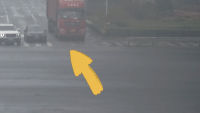 公共視頻顯示,事發前,兩車同時在各自的左轉彎車道等候信號燈。在信號燈轉為綠燈后,黑色轎車先行一步,但由于轉彎半徑過小,“堵”住了半掛車的去路,導致黑色轎車直接進入紅色半掛車車頭盲區范圍,于是發生了碰撞。
