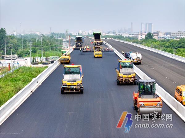 記者從慈溪市交通運輸局了解到,今年5月底,施工方搶抓晴好天氣、全力推進工程進度,高架主線正式進入瀝青攤鋪階段。