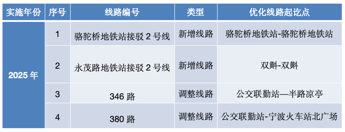 2025年,將實施線路4條,其中新開通接駁線路優化2條,調整線路2條。