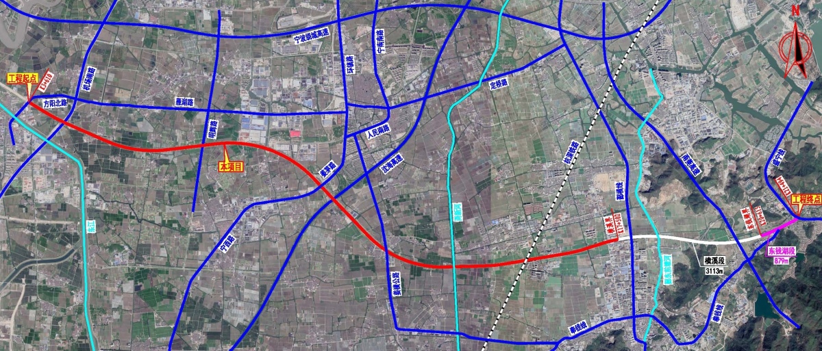 該項目位于姜山鎮、云龍鎮、橫溪鎮、東錢湖鎮。工程起于鄞州姜山鎮與奉化方橋街道交界處,終于東錢湖鎮與S215盛寧線相交。路線全長17.884公里,按一級公路標準設計,設計速度80公里/小時,路基寬度53米。改造提升主要涉及路面提升、道路縱橫坡優化、交叉口渠化改造提升、橋梁提升以及排水設施、交通安全設施提升等內容。