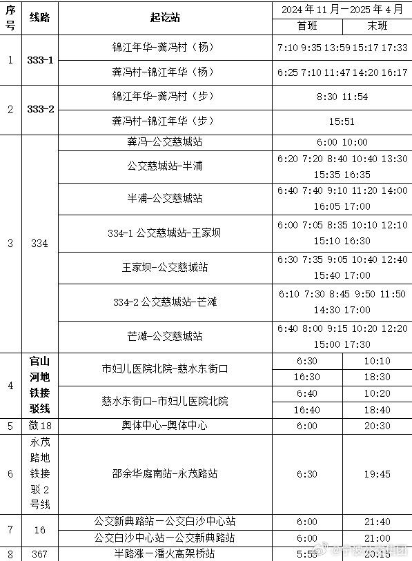 11月1日起,部分公交時刻有調整