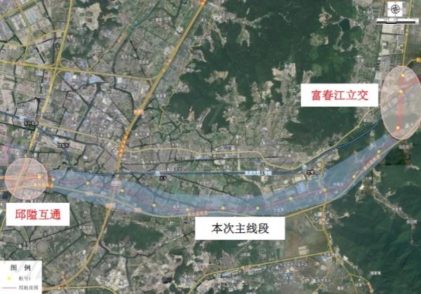 批復文件顯示,環城南路東延快速路一期工程(主線段)西起邱隘立交,東至富春江路,道路總長約12.3公里。