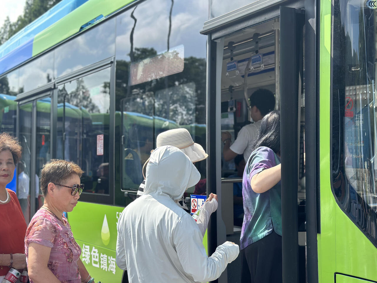 氫能源公交車的發(fā)動機(jī)噪音低、行駛平穩(wěn),車內(nèi)配備了無障礙設(shè)施、人性化座椅、升級防顛簸設(shè)計,車機(jī)搭載了360度全景影像、碰撞預(yù)警等安全系統(tǒng),更加安靜舒適且智能。車廂內(nèi)和車身的設(shè)計相呼應(yīng),以藍(lán)綠色調(diào)為主,印有鎮(zhèn)海樓、萬斛神舟、九龍湖、鰲柱塔、中國科學(xué)院寧波材料所、燈塔、寧波大學(xué)等反白設(shè)計,盡顯鎮(zhèn)海特色。