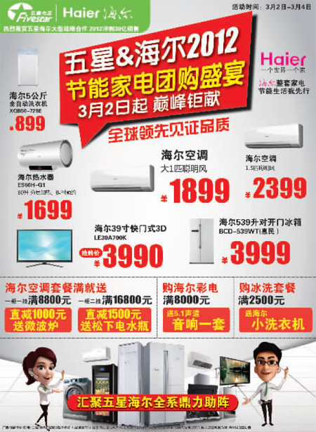 海爾節(jié)能家電團購盛宴3月2日-4日