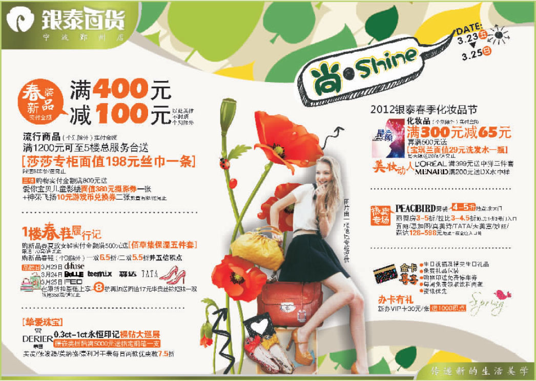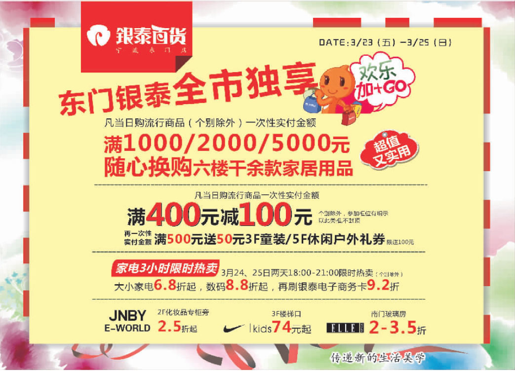 銀泰百貨東門店、鄞州店3.23--3.25打折信息