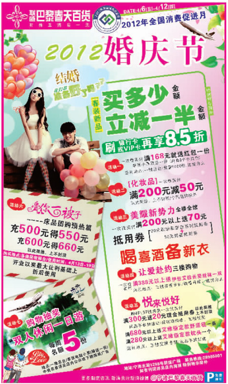 巴黎春天百貨4月6日-12日打折信息
