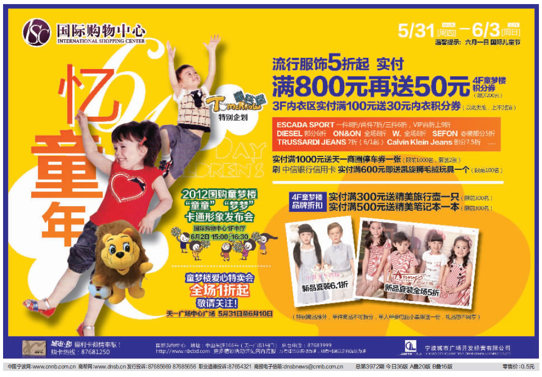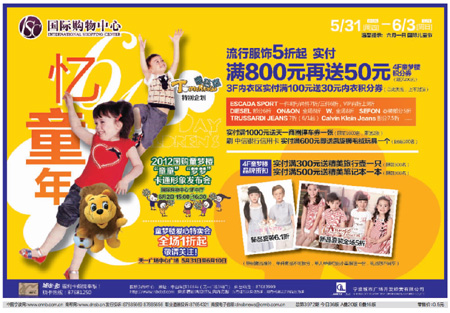 國(guó)際購(gòu)物中心5月31日-6月3日打折信息