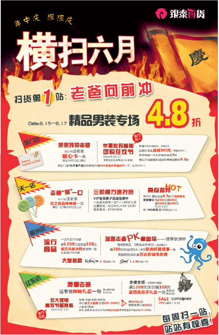 銀泰百貨6月15日-17日打折信息