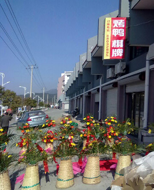 寧波手機報讀者152****3723:在環鎮南路的一街邊,巧遇某店鋪今天早上開張,只見“烤鴨棋牌”四字懸掛著,本想帶著朋友嘗嘗鮮,飽餐一頓,走了進去卻撲了個空?其老板解釋道:我們夫妻倆多年前是賣烤鴨的,如今只是借賣烤鴨的名義開的棋牌坊!哎……都是四人一桌,不是肚子搓一頓,而是麻將搓一頓!這店名有點夸張……