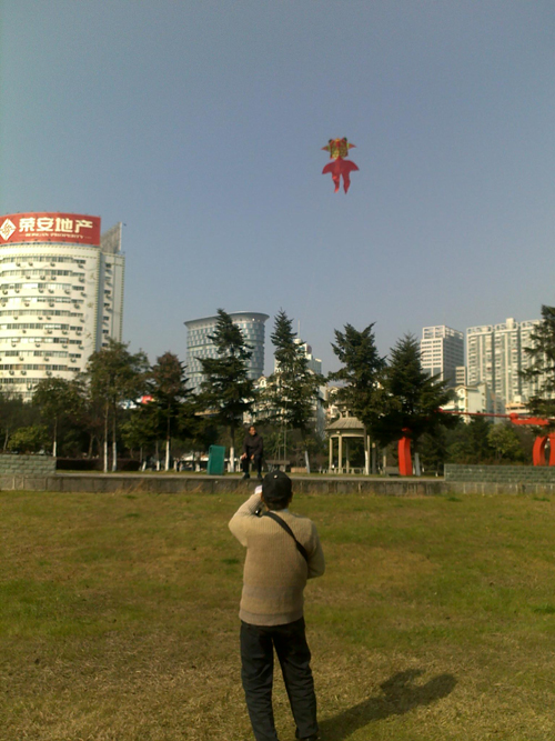 | 暖午放飛巨大魚型風(fēng)箏 |