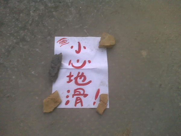 中國(guó)寧波網(wǎng)手機(jī)記者135****8255:水管破裂了,住一樓的老大爺寫(xiě)了給力的四個(gè)字。神馬都是浮云,21世紀(jì)神馬最重要,素質(zhì)。