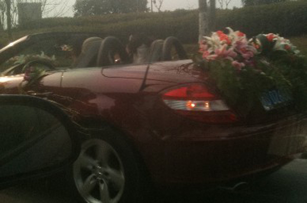 中國(guó)寧波網(wǎng)手機(jī)記者138****4136:拍攝于上周六(1月15日)江東南路,天空不時(shí)飄著白雪,有人卻開(kāi)著敞蓬跑車(chē)接新娘,穿著一身白色婚紗的新娘子坐在副駕駛位置上,一邊還打著電話(huà),看看都覺(jué)得冷,真有點(diǎn)替她擔(dān)心了,新婚的大喜日子可別感冒了!