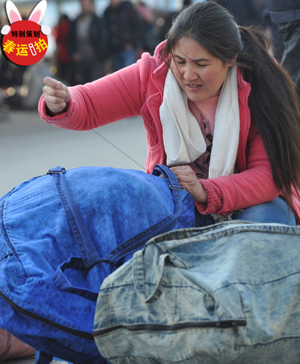 居然有人在火車站縫補行李包.我當時就震驚了!